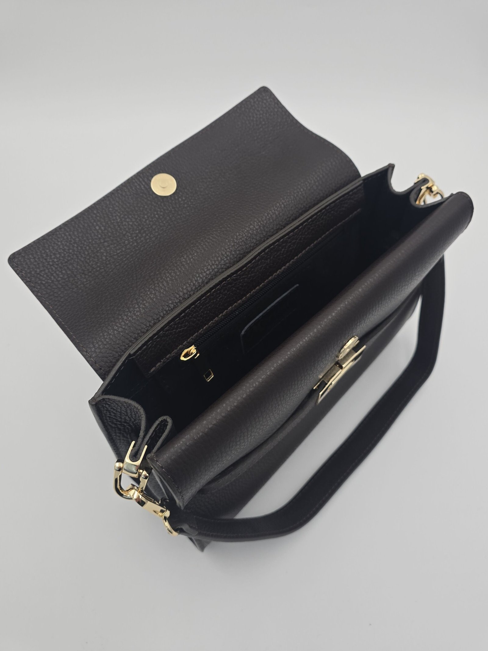 Rankinė Fizenza – tai elegantiška ir praktiška moteriška rankinė, siūta Italijoje iš aukštos kokybės natūralios odos. Tvirta, ilgaamžė ir kartu itin prabangi oda suteikia rankinei solidumo bei rafinuotą išvaizdą, o subtili aukso spalvos detalė tampa stilingu akcentu, pabrėžiančiu modelio išskirtinumą.